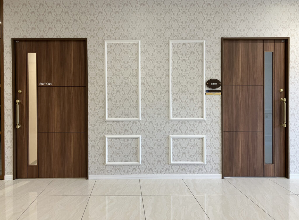 ゴールドのハンドルに合わせ、ゴールドの目地の扉はとても重厚感があり、高級感のある空間づくりを実現できました。